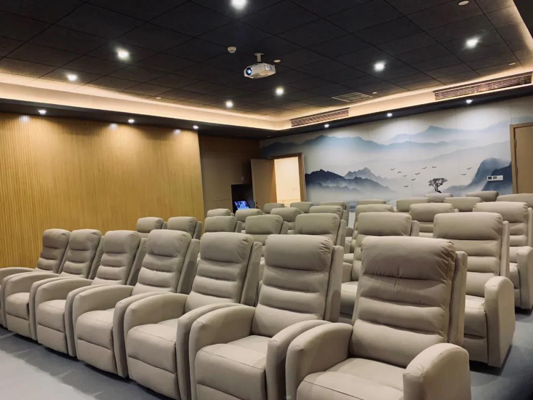中心负一楼主要是我们的休闲娱乐区域,有影院、练歌房、体感游戏室和示教室。在这里可以举行观影会或者歌咏比赛,丰富娱乐生活,旨在为患者回归社会和家庭提供高质量康复场景。